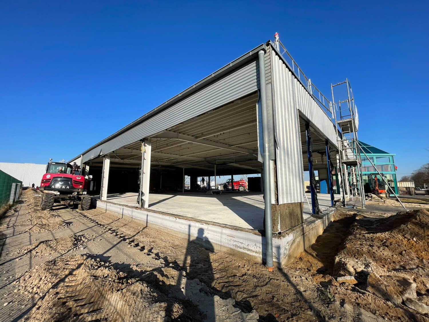 Der Umbau des Peter Jensen Standorts in Stendal ist in vollem Gange! Auf einer Fläche von 1.700 m² modernisieren die Hallenprofis die bestehenden Räume und schaffen eine zeitgemäße Umgebung. Ausstellungs-, Büro- und Personalbereiche werden entkernt. Zudem erhält das Gebäude eine neue Dach- und Wandverkleidung, die nicht nur optische Akzente setzt, sondern auch für eine verbesserte Energieeffizienz sorgt.