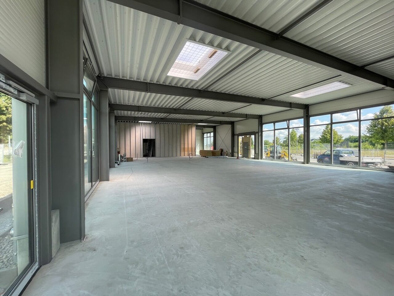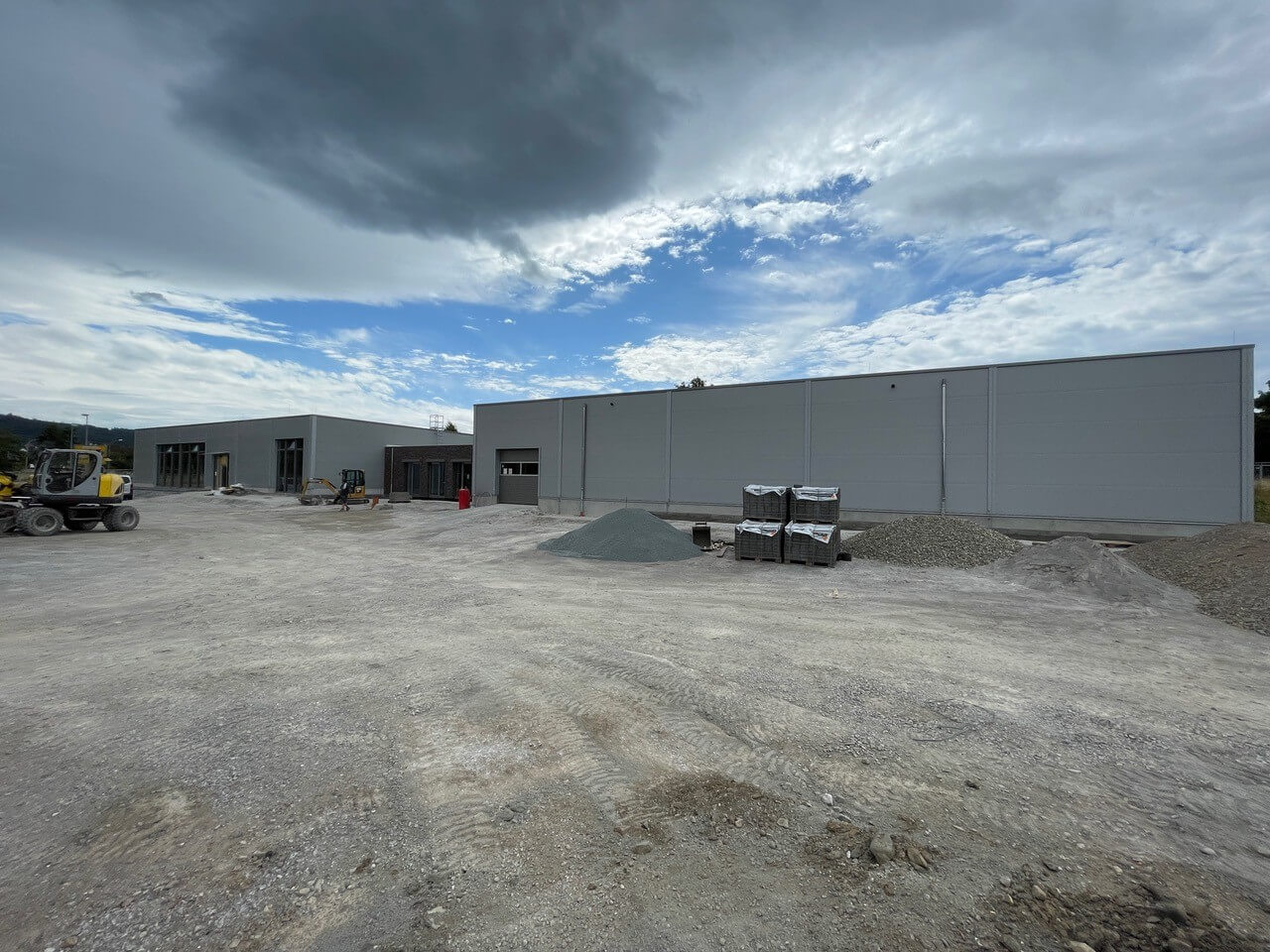 Auch im Bereich der Fassaden gibt es bereits beachtliche Fortschritte zu vermelden: Die Fassadenarbeiten an beiden Hallen sind abgeschlossen. Sie erstrahlen nun in einem modernen Farbton in Weißaluminium, der dem Gesamtkomplex ein zeitgemäßes und hochwertiges Erscheinungsbild verleiht. Der dazwischenliegende Bürotrakt hebt sich mit einer Fassade aus gebranntem Klinkermauerwerk stilvoll ab und schafft so einen gelungenen architektonischen Kontrast zu den Hallenbauten.